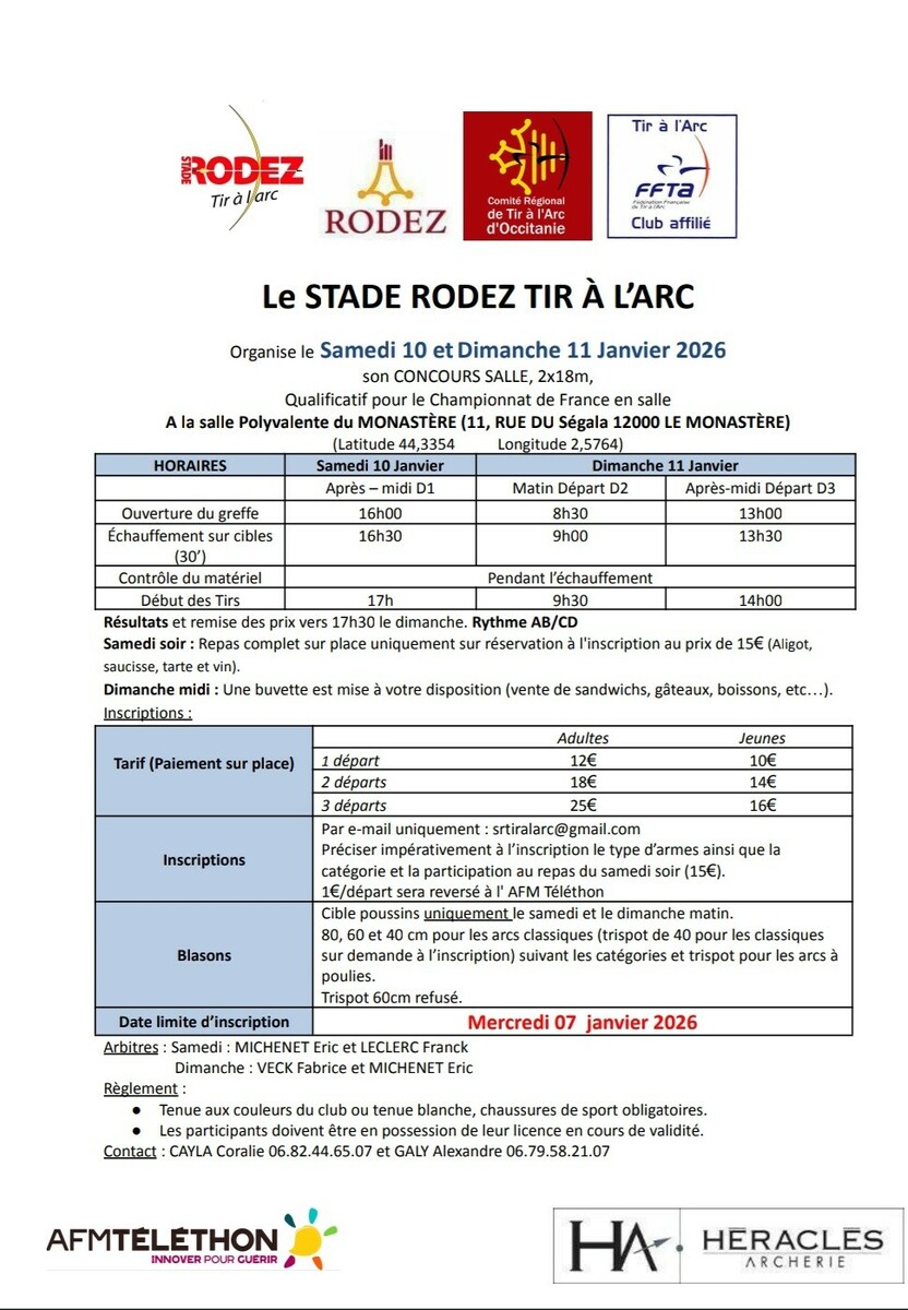 🏹 Inscription à la compétition en salle de Rodez dans le (12)