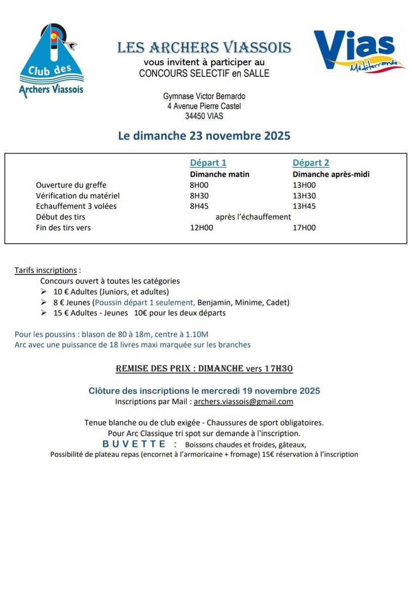 Vous pouvez désormais vous inscrire pour la compétition en salle de Vias dans l’hérault (34)